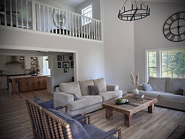 The Lower Room is a convinient location on the main floor. Set in the corner of the house, it allows for privacy and is next to a large bathroom with an oversized walk in shower. This room allows easy, private access to the back firepit.